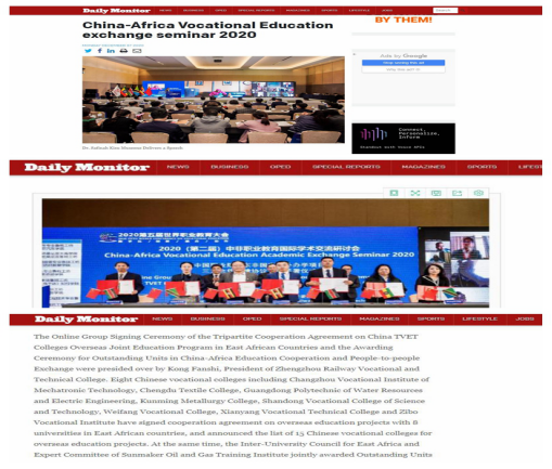 与坦桑尼亚达累斯萨拉姆理工公司签订联合办学项目,开设中坦鲁班工坊、中坦云智公司