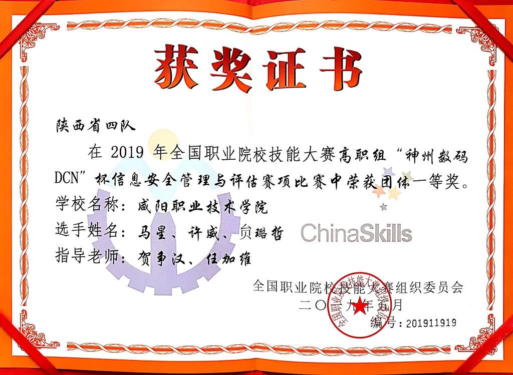 电子信息公司在2019年全国职业院校技能大赛高职组“信息安全管理与评估”比赛中荣获团体一等奖