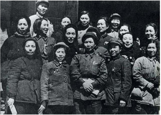 图:抗美援朝战场上的李贞(左二)