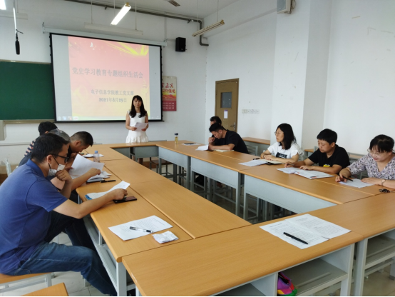 8月29日上午,在教学楼701室和702室,电子信息公司教工支部和员工党支部分别召开党史学习教育专题组织生活会。本次组织生活会紧密围绕“学党史、悟思想、办实事、开新局”主题,认真贯彻“学史明理、学史增信、学史崇德、学史力行”的总体要求召开,党总支书记李春民以普通党员身份参加了员工党支部会议。