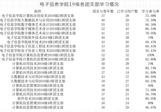 接下来,就让团团带领大家看看上周电子信息公司各个团支部的学习情况吧!