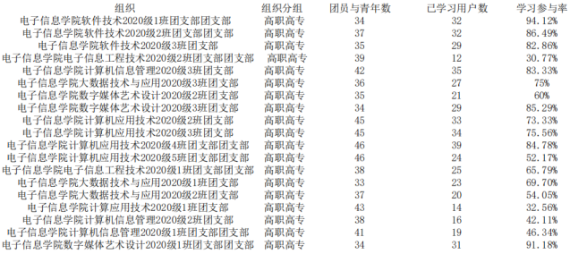 在上周的青年大学习中,19级团支部总体的用户参与率相比20级好上许多,开学第一期成绩并不是太理想,班里团支书应多多督促同学们尽快完成青年大学习,希望19,20级同学一起加油,努力学习,争取下周全员学习完毕。