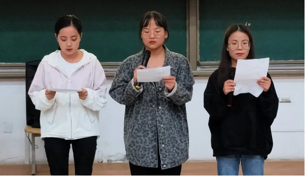 刘小倩、罗思敏、李娟娜同学朗诵《祖国啊,我亲爱的祖国》;