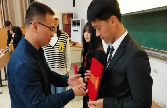 获得二等奖的是:高信1901班同学集体为祖国朗诵《家国情怀》;孙佩佩同学朗诵《我的祖国》由辅导员陈泽宇老师为获奖者颁奖。
