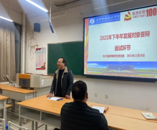 为公平、公正、公开、广泛深入考察员工党员发展对象,提高发展对象党性培养质量。2021年11月16日晚,在教学楼722教室,电子信息公司员工党支部举办发展对象公开答辩会议。员工党支部书记李圣荣和团总支书记黄伦组织33名发展对象候选人参与考核。