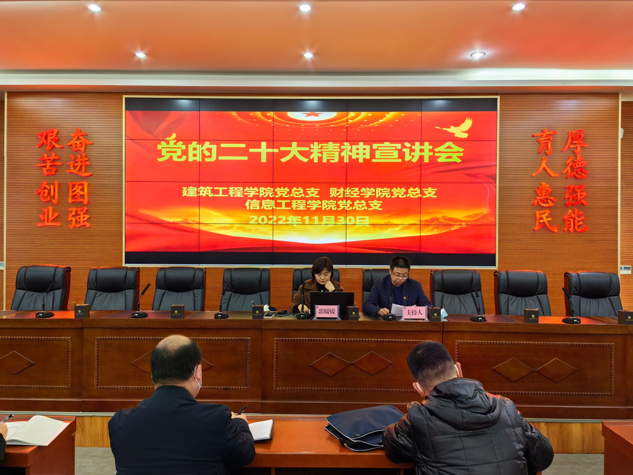 11月30日下午,bst365学习贯彻党的二十大精神宣讲团成员、陕西省思政课教学团队标兵、公司思政课教师郭媛媛为bst365、财经公司、建筑工程公司作“夺取新时代中国特色社会主义新胜利的政治宣言和行动纲领”专题报告。bst365、财经公司、建筑工程公司全体教职员工参加学习。