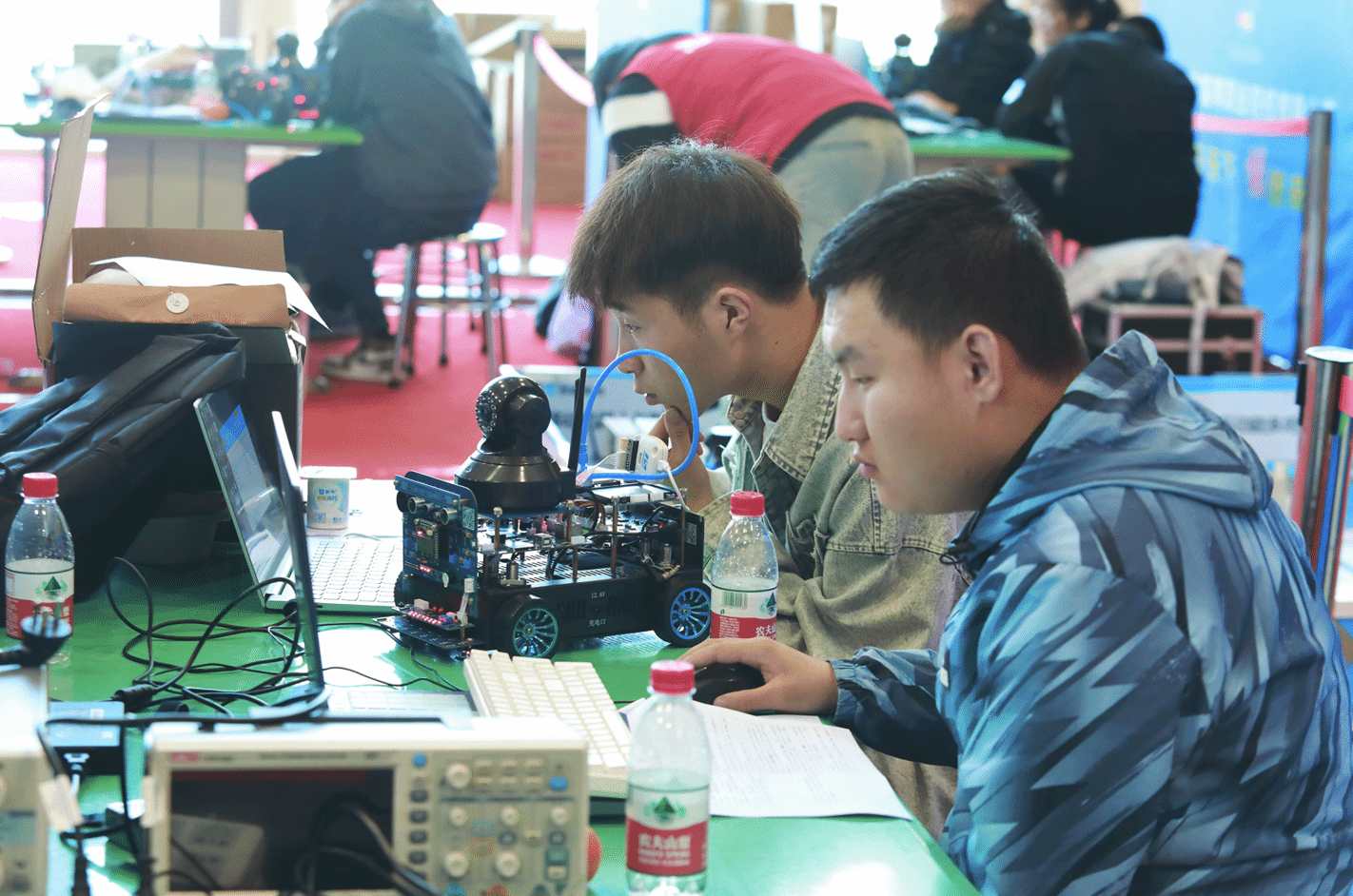 本赛项为团体赛,每队由3名选手和2名指导教师组成,比赛时长共计10个小时。竞赛内容涵盖嵌入式系统硬件制作与驱动开发、嵌入式应用程序开发和嵌入式边缘计算应用开发三个模块,重点考查选手嵌入式系统应用开发工程实践能力、创新能力和应急处理等综合职业能力。比赛过程中,各参赛队员沉着冷静、奋力拼搏,展示了较高的专业技能和职业素养。