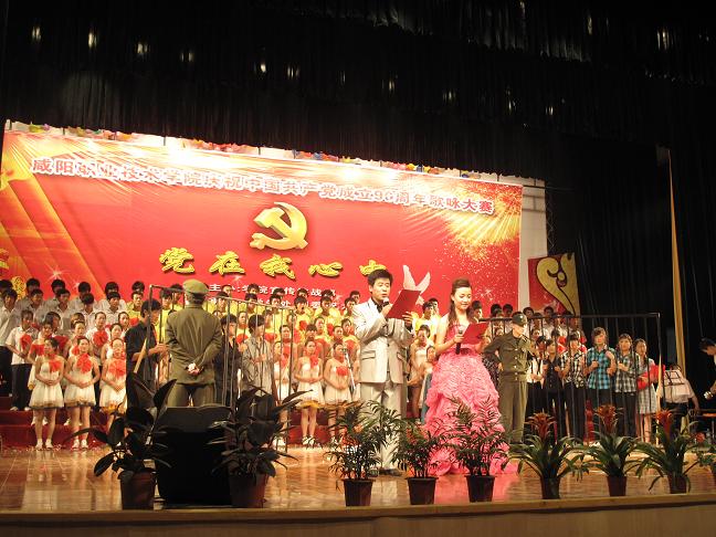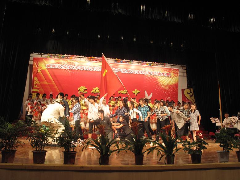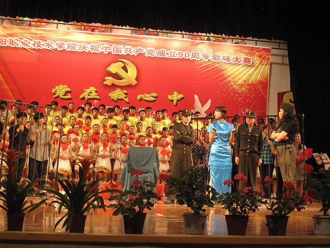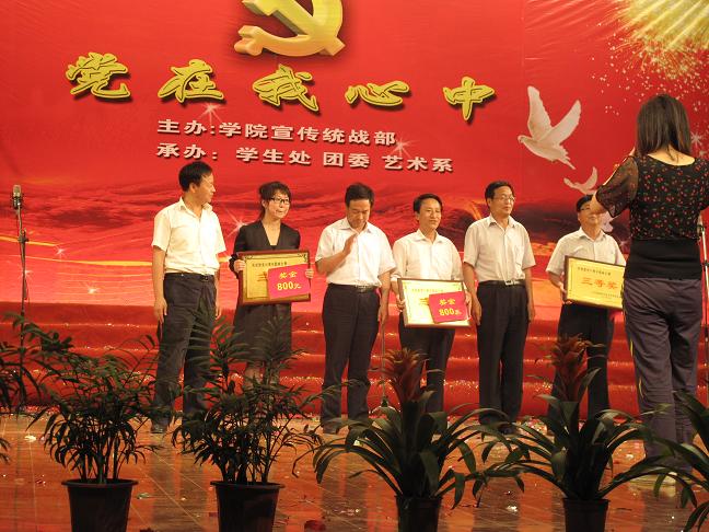 我系为大赛奉献的曲目,曲曲感人至深。一曲《红梅赞》形象地再现了一段感人的历史,传颂的红岩精神;在《灿烂的阳光下》更点燃了同学们“吃水不忘挖井人”,爱党、爱国的赤子情怀。整个节目融歌声、舞蹈、话剧为一体。以鲜明的主题、新颖的编排,饱满的激情赢得了观众的喝彩,荣获节目三等奖。