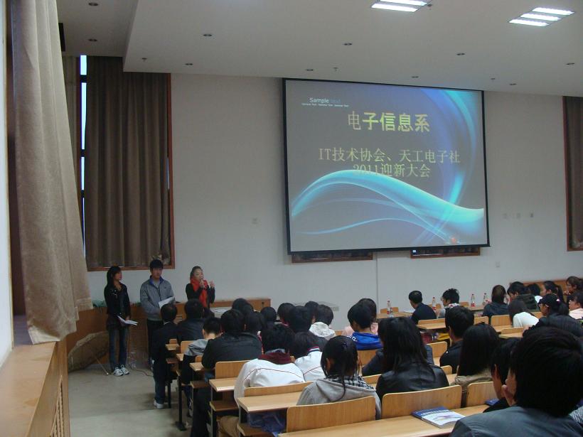 10月19日,电子信息系“第二课堂”——天工电子社、IT协会两大专业社团召开纳新和换届工作,160余名新老社员参加会议。