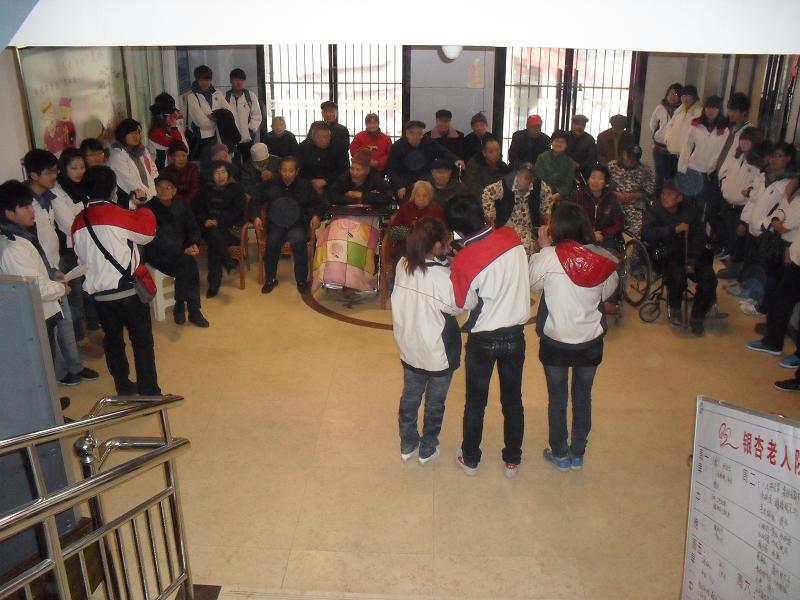 同学们为老人送去奶等慰问品,并深入公寓帮助老人打扫卫生,表演精心准备的节目。之后,老人和同学们促膝长谈,对他们的行为表示称赞,并希望同学们能够努力学习,不要辜负父母的期望,用成绩来回报父母、回报公司、回报社会。活动结束时,同学们与老人依依告别,并合影留念。