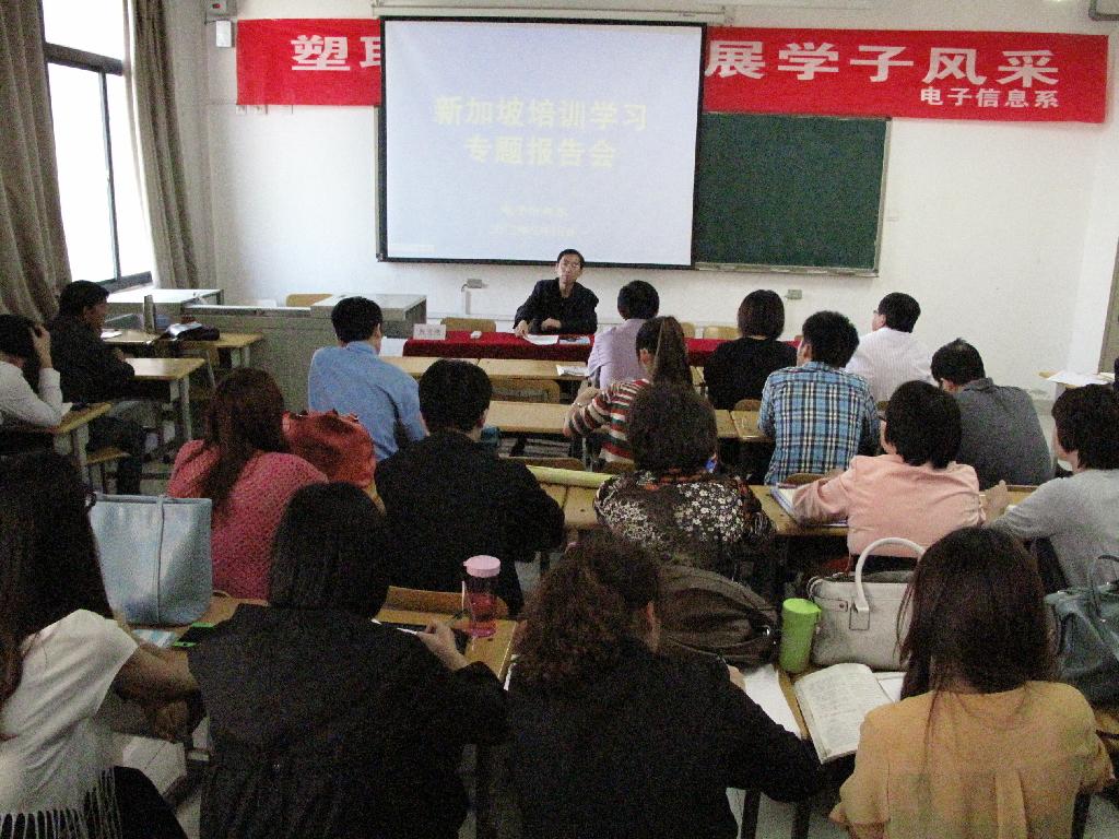 9月18日下午,电子信息系在教学楼701召开新加坡南洋理工公司培训学习报告会,全系专兼任教师参加了本次会议,会议由系主任王辉主持。