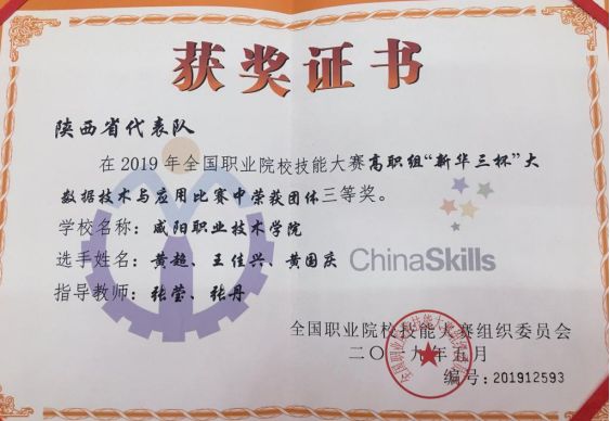 6月14日,2019年全国职业院校技能大赛高职组”大数据技术与应用”赛项在贵州轻工职业技术公司闭幕。全国28个省市区、98支参赛队共计294名参赛选手参与角逐。bst365官方网站电子信息公司指导教师张莹、张丹以及计算机信息管理1702班黄超、计算机信息管理1701班王佳兴、软件技术1701班黄国庆3位员工组成陕西省代表队,经过紧张而激烈的比赛,最终取得得团体三等奖。