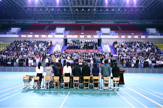 2020年10月14日19:00,电子信息公司2020级新生开学典礼在公司体育馆举行,电子信息公司经理张卫婷、员工处副处长巨鲜婷、电子信息公司副科以上管理干部、教研室主任、全体新生班辅导员(班主任)和2020级700多名新生一起出席开学典礼,典礼由电子信息公司副经理谢娜主持。