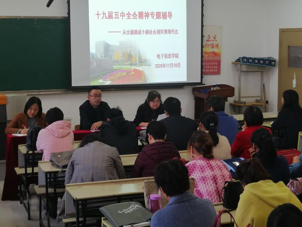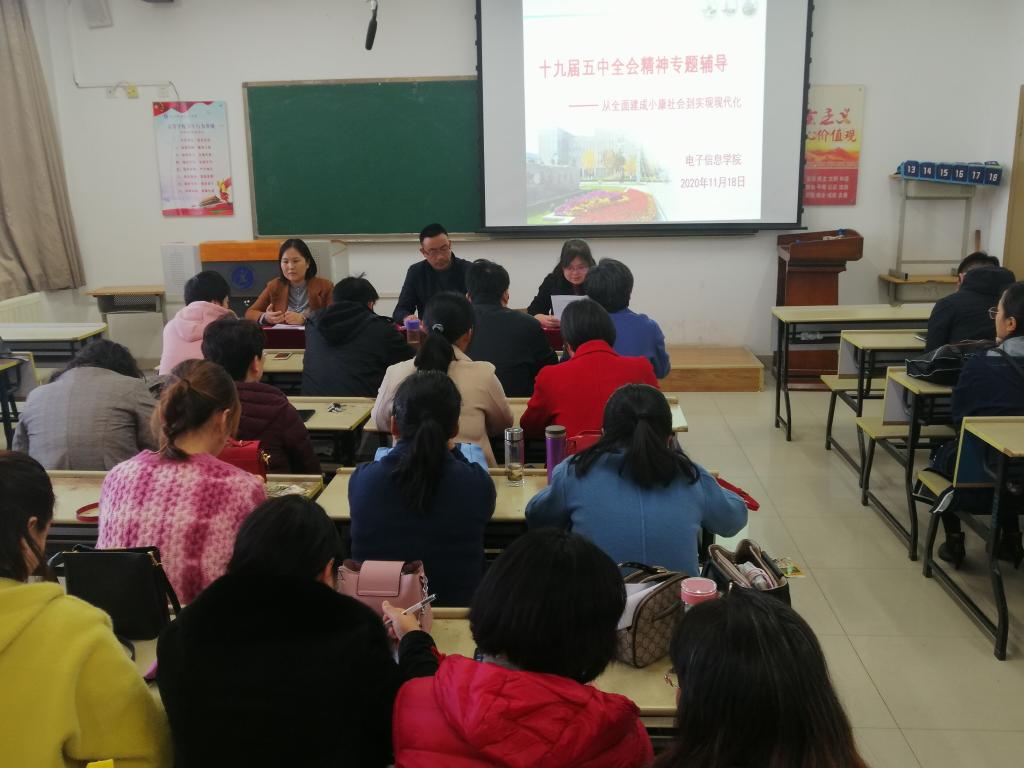 11月18日下午,电子信息公司召开教职工大会,集体学习党的十九届五中全会相关精神。