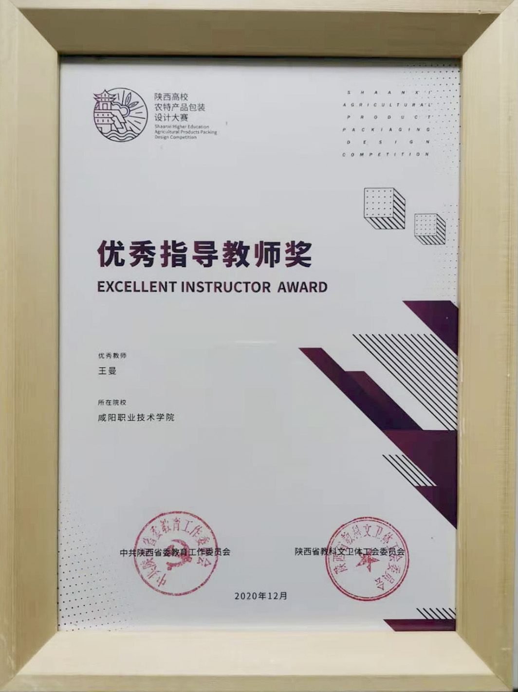 近日由陕西省委教育工委、省教科文卫体工会联合主办,西安美术公司承办的2020年陕西高校农特产品包装设计大赛落下帷幕,bst365电子信息公司教师王曼获优秀指导教师奖。