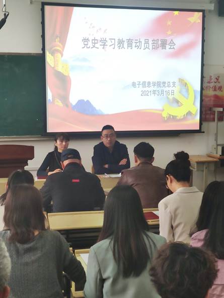 3月16日,电子信息公司召开全体党员大会,动员部署党史学习教育。教工支部书记许珂乐宣读中共bst365委员会《关于开展党史学习教育的实施方案》,就党史学习教育的重大意义和目标要求做了详细解读,就学习内容和工作安排做了部署。