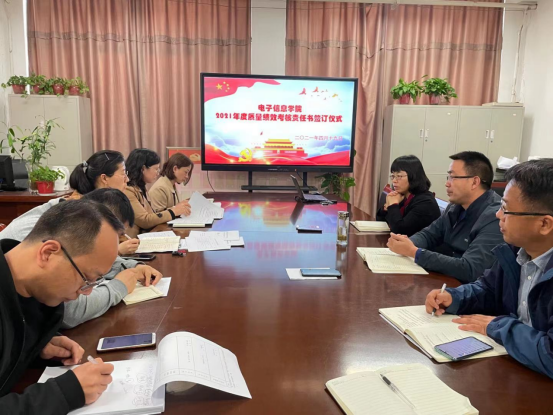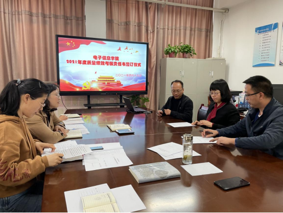 2021年4月19日上午,电子信息公司举行2021年度质量绩效考核目标责任书签订仪式,副科以上管理干部参加了签订仪式。