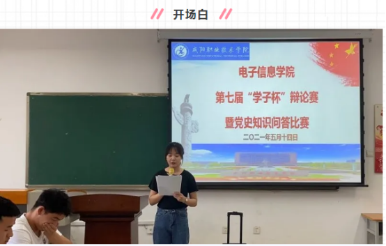 至此本次活动拉开了序幕“百年征程为民心,变局新机谱华章。”无数先辈的血泪和奋斗成就了新时代的华章。值此中国共产党成立一百周年之际,作为新时期的奋斗者,咸职学子坚定地跟随党的步伐,传承党的意志,积极思考、细致推敲、勇于尝试、善于配合,以语言进行真理探讨,用辩论展现青年风采。同时,此次活动期间希望同学们文明观赛、积极思考,培养逻辑推敲能力,将思考与探索融入学习与生活中。