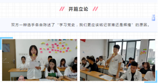 为庆祝中国共产党,引导同学们铭记红色历史、提高爱国情怀、弘扬革命精神开展了“学习党史,我们更应该铭记苦难还是辉煌”主题辩论会。
