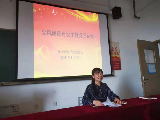 5月19日,电子信息公司党总支在教学楼701召开党风廉政建设主题党日活动。