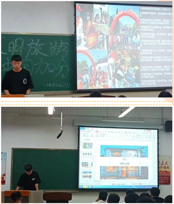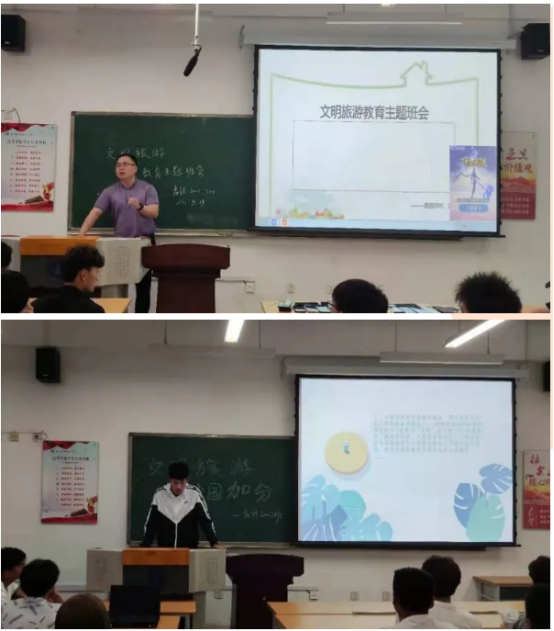 在辅导员与班长的组织下,各个班级的同学用心学习本次文明旅游宣传教育班会。让我们康康他们认真的身影。