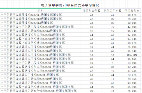 接下来,就让团团带领大家看看上周电子信息公司各个团支部的学习情况吧!