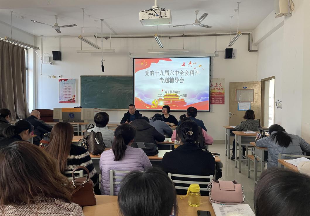 11月24日下午,电子信息公司在教学楼701召开党的十九届六中全会精神专题辅导会,全体教职工参加会议。会议由党总支书记李春民主持。