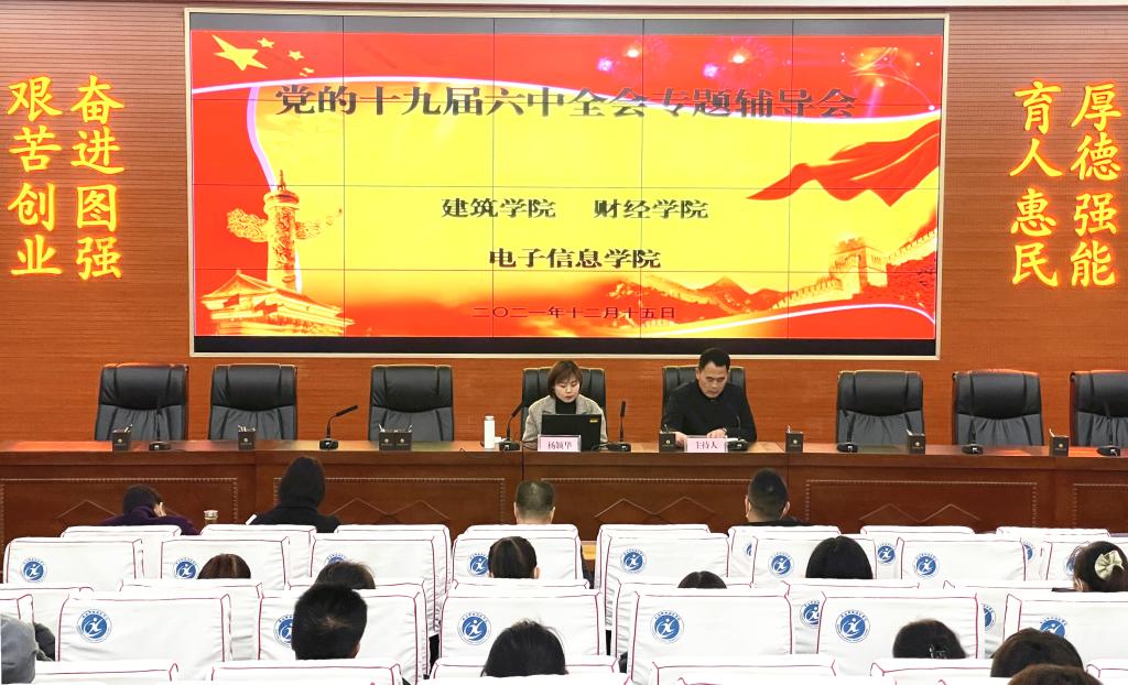 12月15日下午,公司十九届六中全会精神宣讲团成员马克思主义公司教师杨颖华作学习贯彻全会精神专题辅导报告。电子信息公司、建筑公司、财经公司全体教职工参加报告会,会议由建筑公司党总支书记邢剑宏主持。