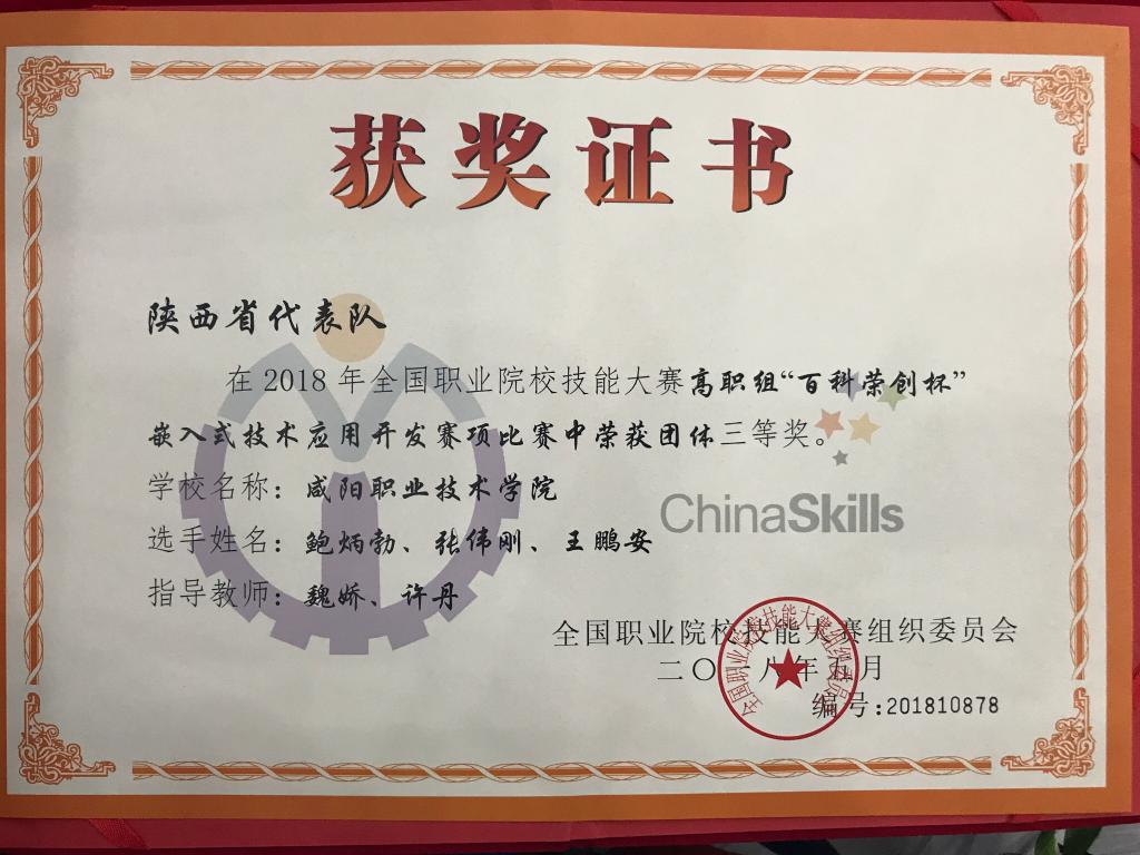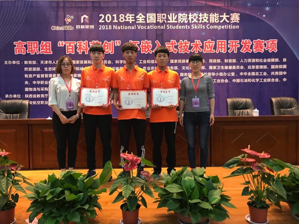 2018年全国职业院校技能大赛高职组“百科荣创杯”嵌入式技术应用开发赛项比赛中荣获团体三等奖