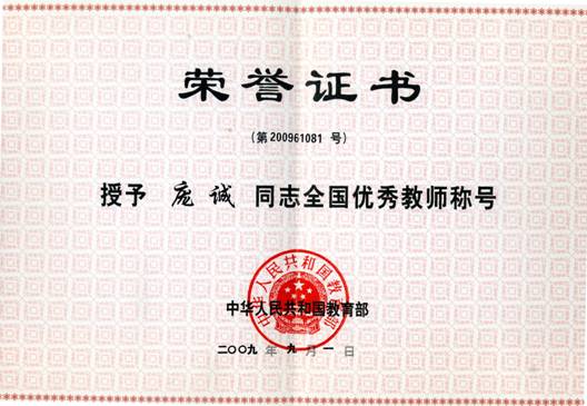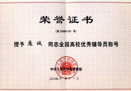 全国优秀教师、优秀辅导员、省师德标兵——庞诚